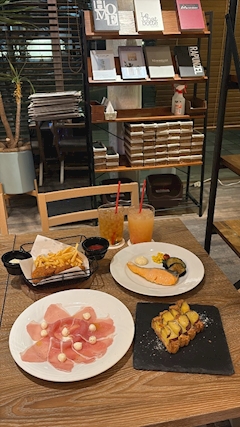 やっほ〜૮˶• ֊ •˶ა りのです🩵 今日はりのおやすみです😴 隠れおしゃれカフェ☕ 初めて行ったんだけどら全部おいしかった🫠 ハマりそう アフタヌーンティーもあったから行こうかなあ💭🩵 ばいばい👋