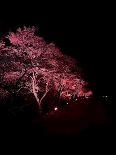 こんばんは!ゆなです! 今日はスノボしにいってました🏂昨日の雨と気温の高さでだいぶ雪なくなってました😭もうあと少しでシーズンアウト、、、寂しいなあ。 帰り道にたまたま桜がライトアップされててキレイだった🌸