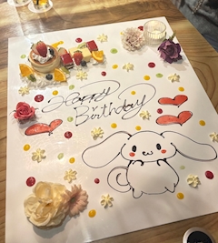 やっほ〜૮˶• ֊ •˶ა りのです🩵 今日は20時からりのいます!! この前お友達がお祝いしてくれたの😭😭✨ りのが大好きなシナモン🥺🩵 嬉しかったなあ💭 ありがとう。 ばいばい👋