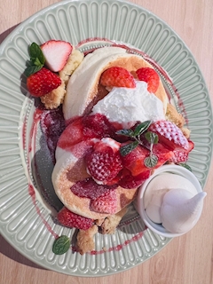 こんばんは 念願のパンケーキ♡ おいしかったぁ🥰 今日も出勤です! アディオス