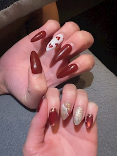 こんばんは 半年ぶりくらいにネイルしたぁ💅✨ ゆりゆりもバレンタインネイル♡ボルドーかわいい♡ 早く爪伸びないかぁ〜 アディオス
